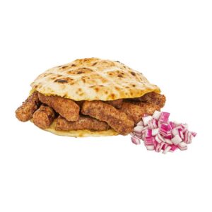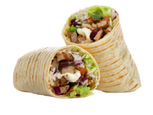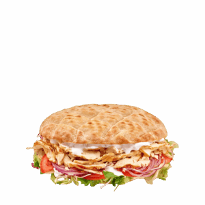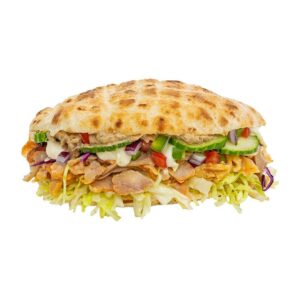 100% Chicken Kebab Meat, Tortilla, Cucumber, Iceberg, Cabbage Mix Salad, Pico De Gallo, Onion Cubes, Eggplant Spread, And Ranch Dressing. |