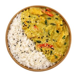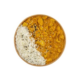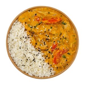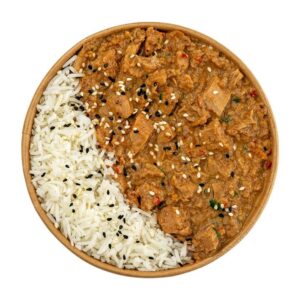 ![]() 100% Chicken Breast, Korma Curry Coconut Sauce, Basmati Rice, And Roasted Sesame. |