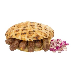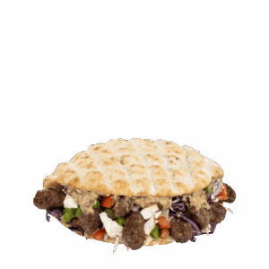 ![]() 100% Angus Beef Chewap, Flatbread, Iceberg, Tomato, Feta, Cabbage Mix Salad, Onion Cubes, And Tzatziki Dip. |