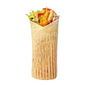 100% Chicken Kebab Meat, Tortilla, Iceberg, Cabbage Mix Salad, Tomato, Onion Cubes, And Ranch Dressing.