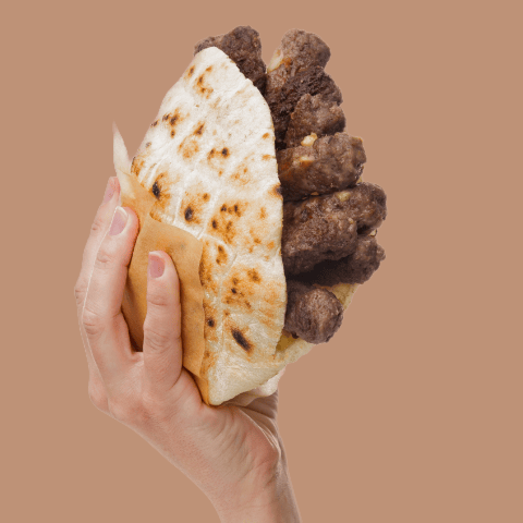 ![]() 100% Angus Beef Chewap, Flatbread, Iceberg, Tomato, Feta, Cabbage Mix Salad, Onion Cubes, And Tzatziki Dip. |